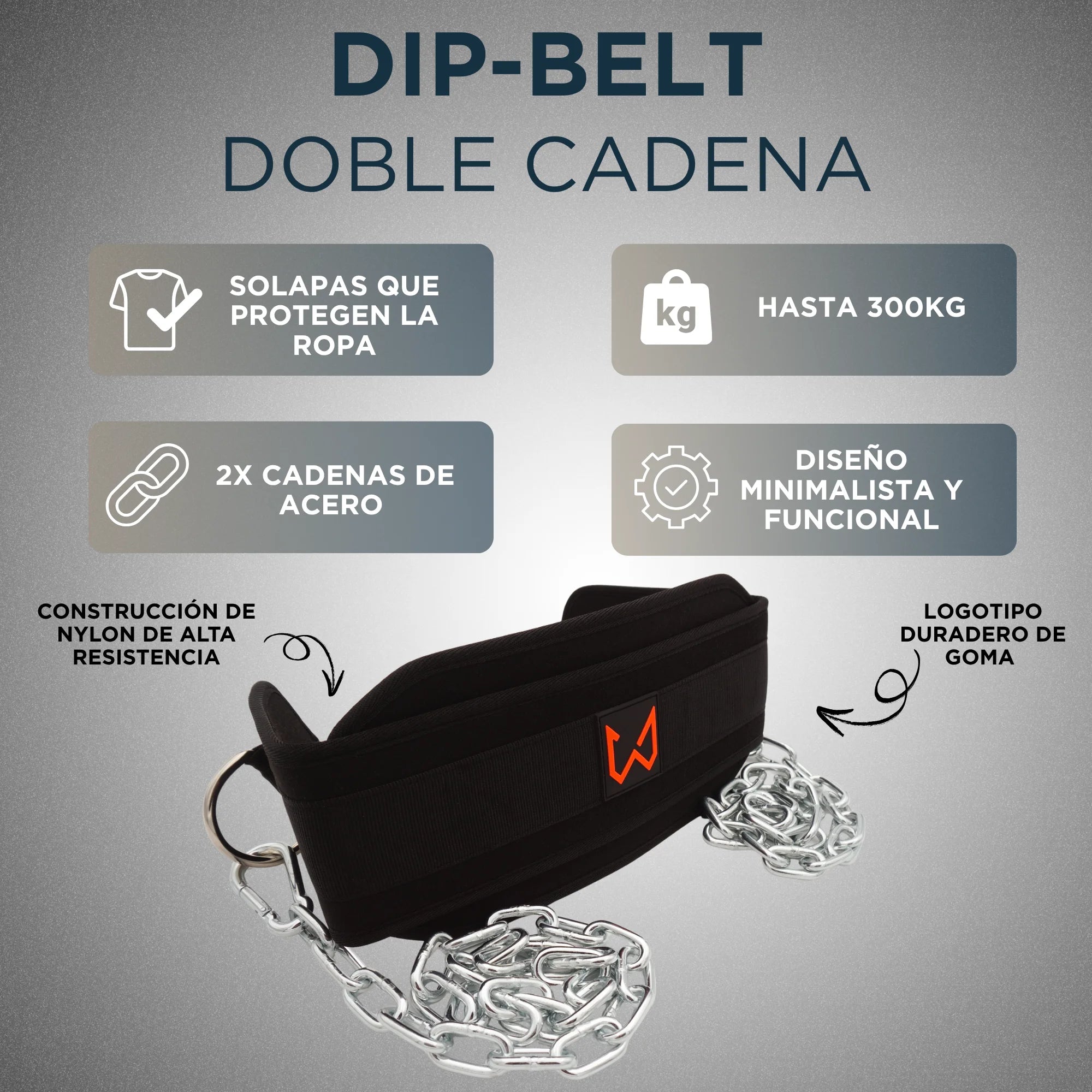 Pensado para brindar comodidad incluso bajo cargas intensas, este cinturón combina un cuerpo de nailon reforzado con acolchado interior suave que reduce la presión en caderas y zona lumbar durante los ejercicios. Las cadenas ajustables permiten personalizar el ajuste según el movimiento que estés realizando.