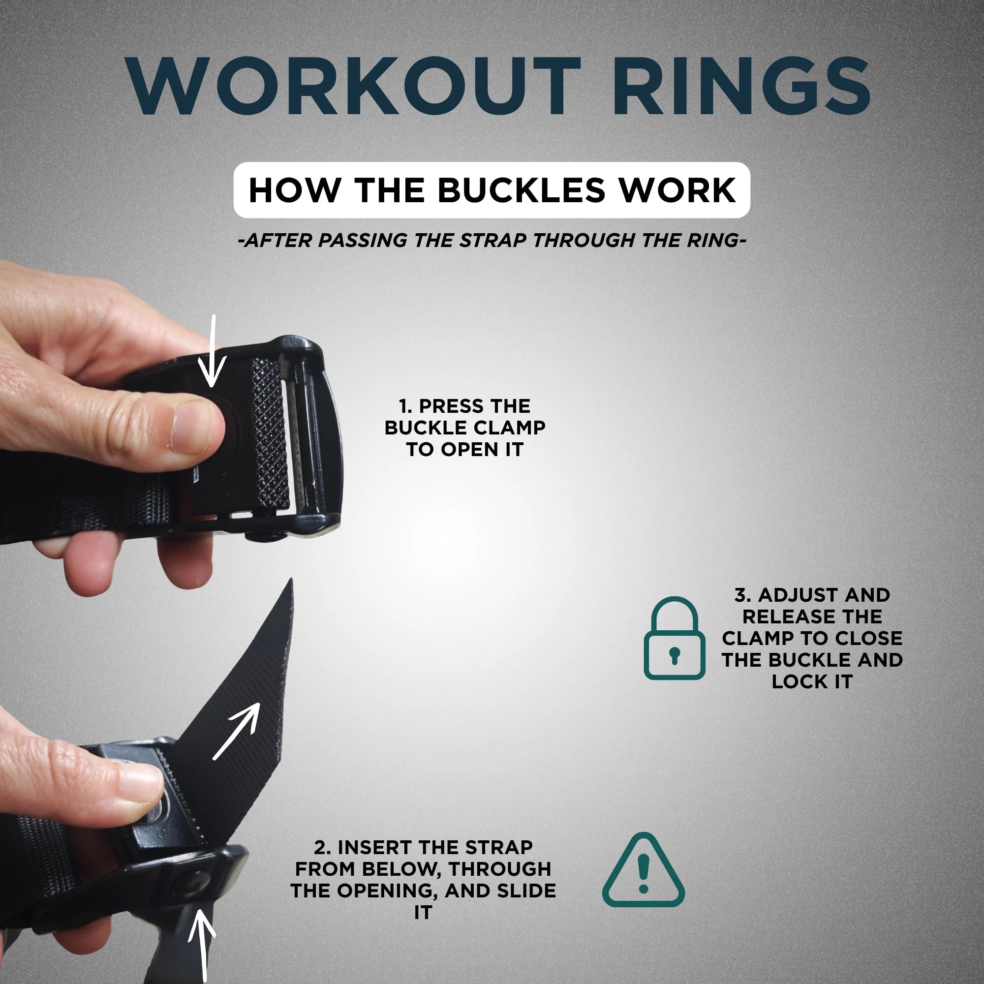 Les sangles robustes fournies supportent jusqu'à 300 kg , offrant une sécurité et une stabilité inégalées pendant vos entraînements. Dotées de boucles sécurisées et faciles à utiliser, elles permettent des réglages rapides pour ajuster vos anneaux à la hauteur idéale pour chaque exercice. Elles sont donc parfaites pour tous types d'exercices, des pompes et dips aux muscle-ups avancés et aux mouvements de swing dynamiques. Combinez votre entraînement aux anneaux avec nos bandes de résistance pour adapter la difficulté, favoriser l'apprentissage des compétences ou varier vos entraînements.